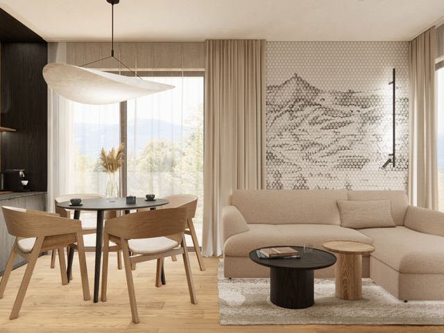 To tutaj, w otoczeniu gór, Goście będą mogli się zrelaksować i komfortowo podziwiać piękno przyrody z własnego balkonu lub tarasu. Każdy apartament dwupokojowy został wyposażony w funkcjonalny aneks kuchenny oraz przestronną łazienkę z możliwością instalacji prywatnej sauny. Istnieje także możliwość montażu klimatyzacji, co dodatkowo podnosi standard pobytu.